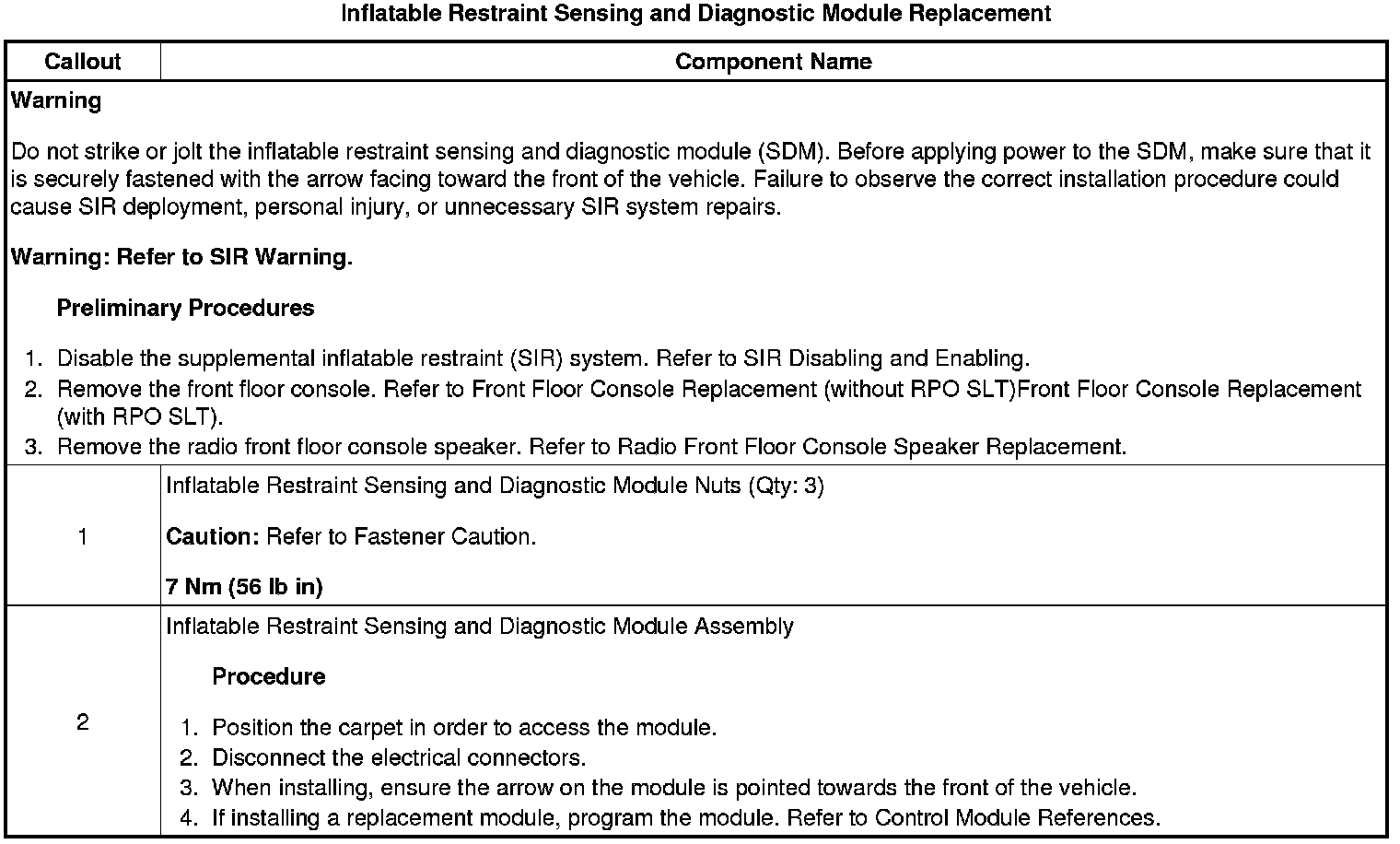 Inflatable Restraint Sensing and Diagnostic Module Replacement