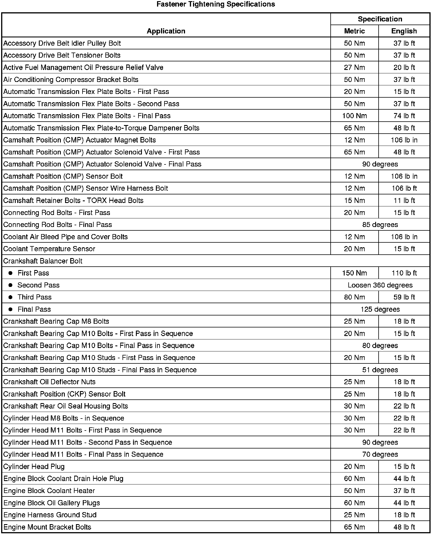 Fastener Tightening Specifications