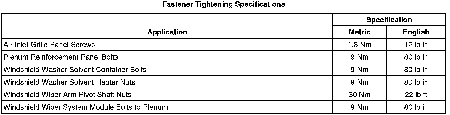 Wiper and Washer Systems: Specifications