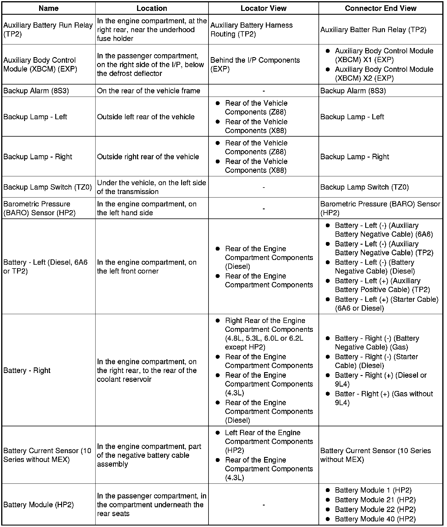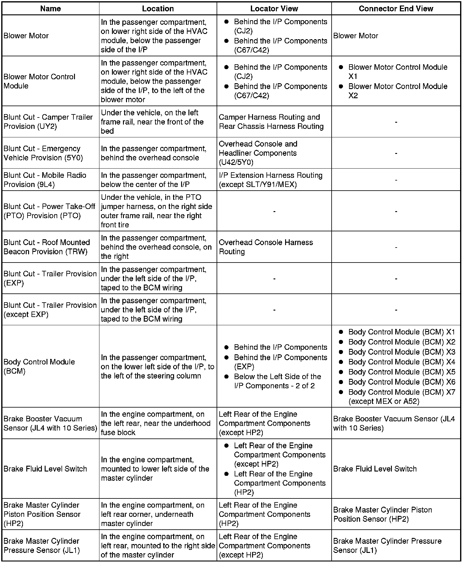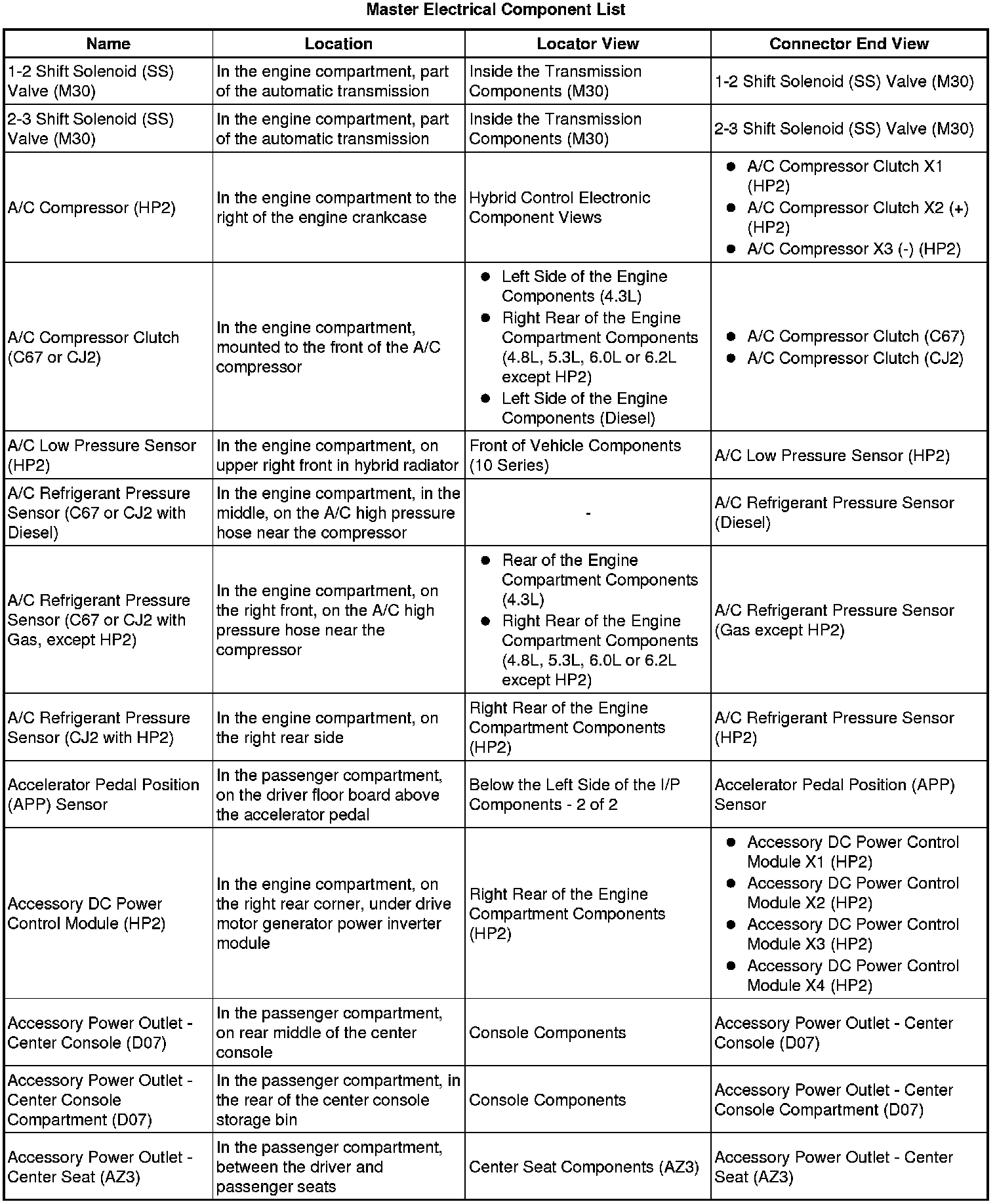 Master Electrical Component List