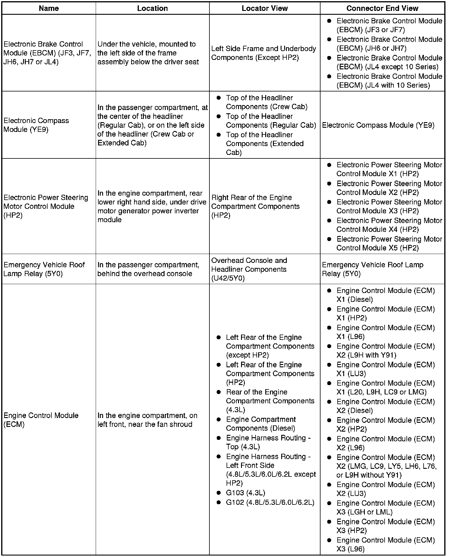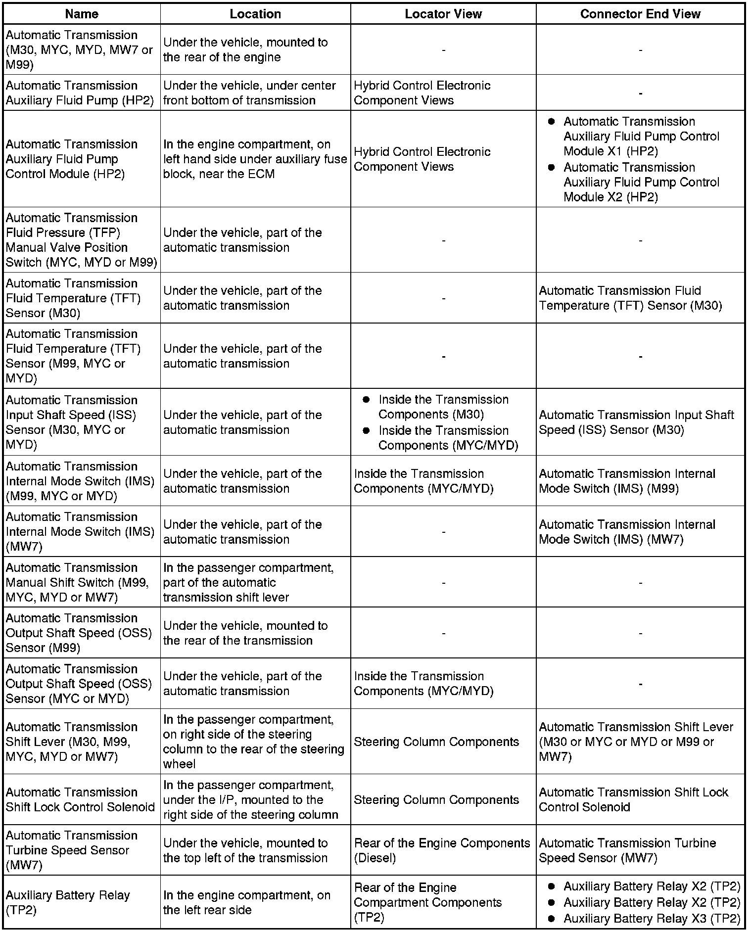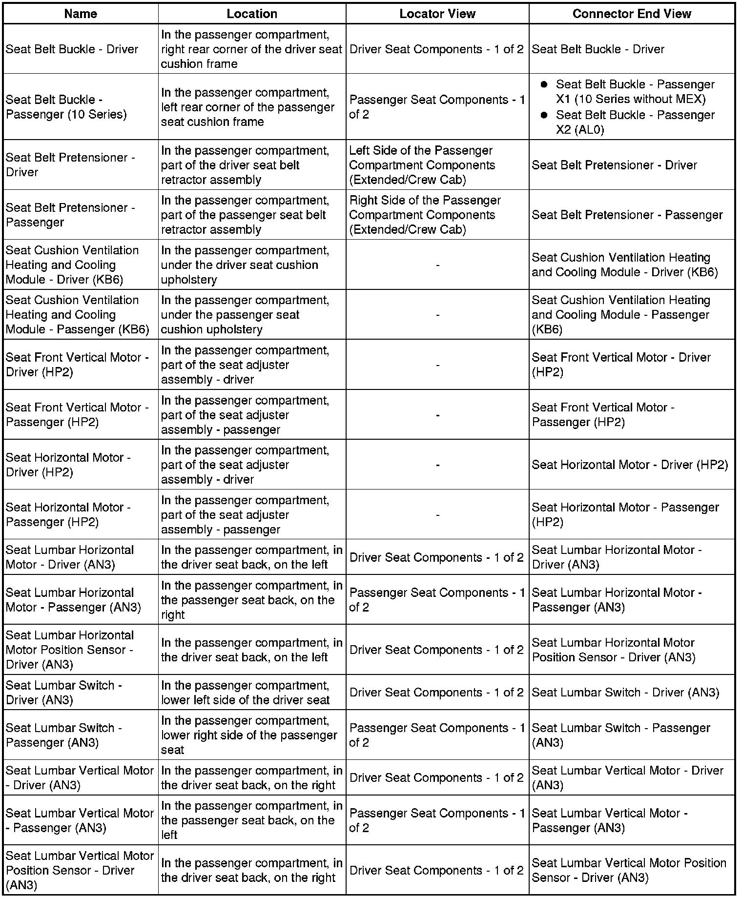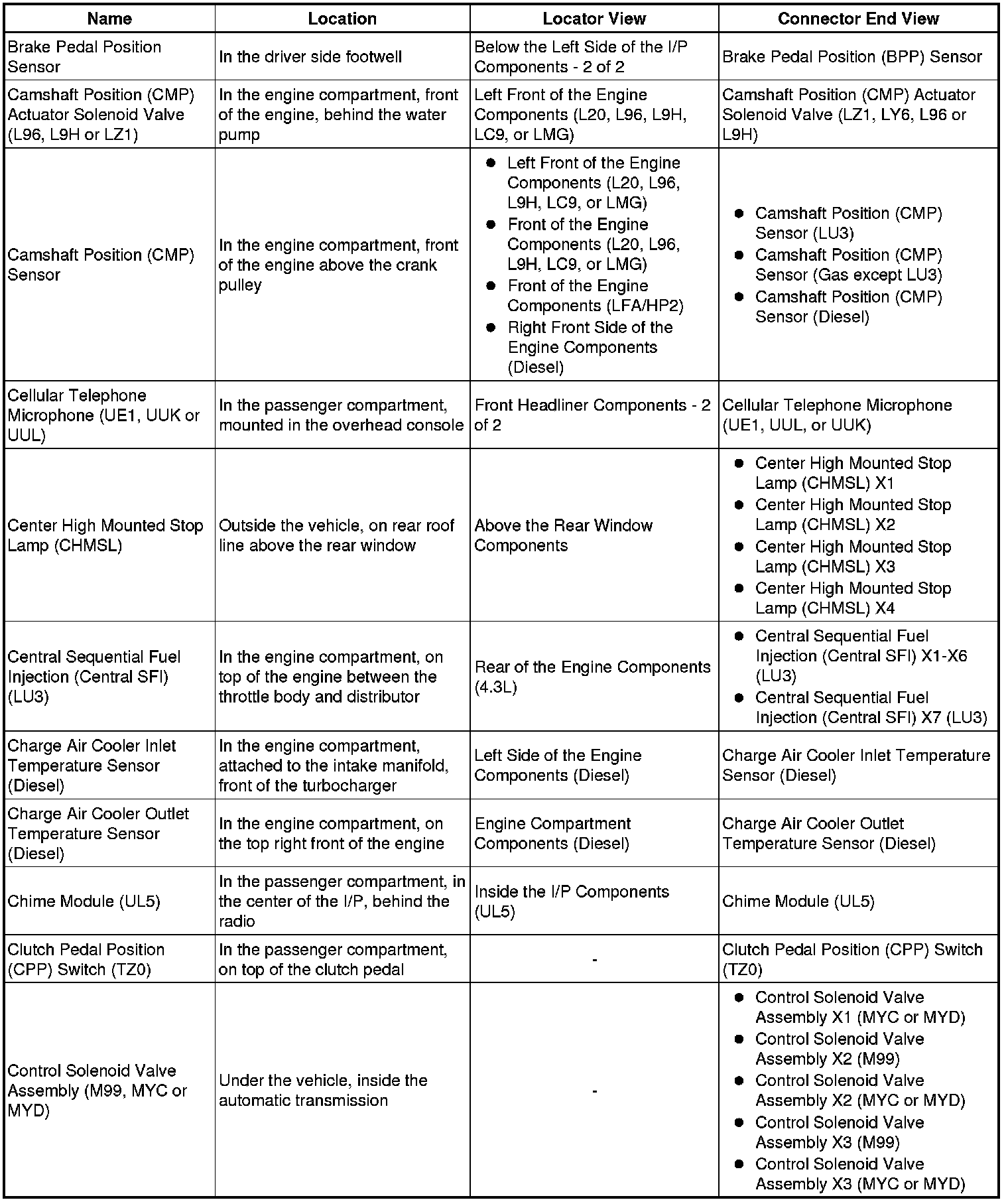 Master Electrical Component List