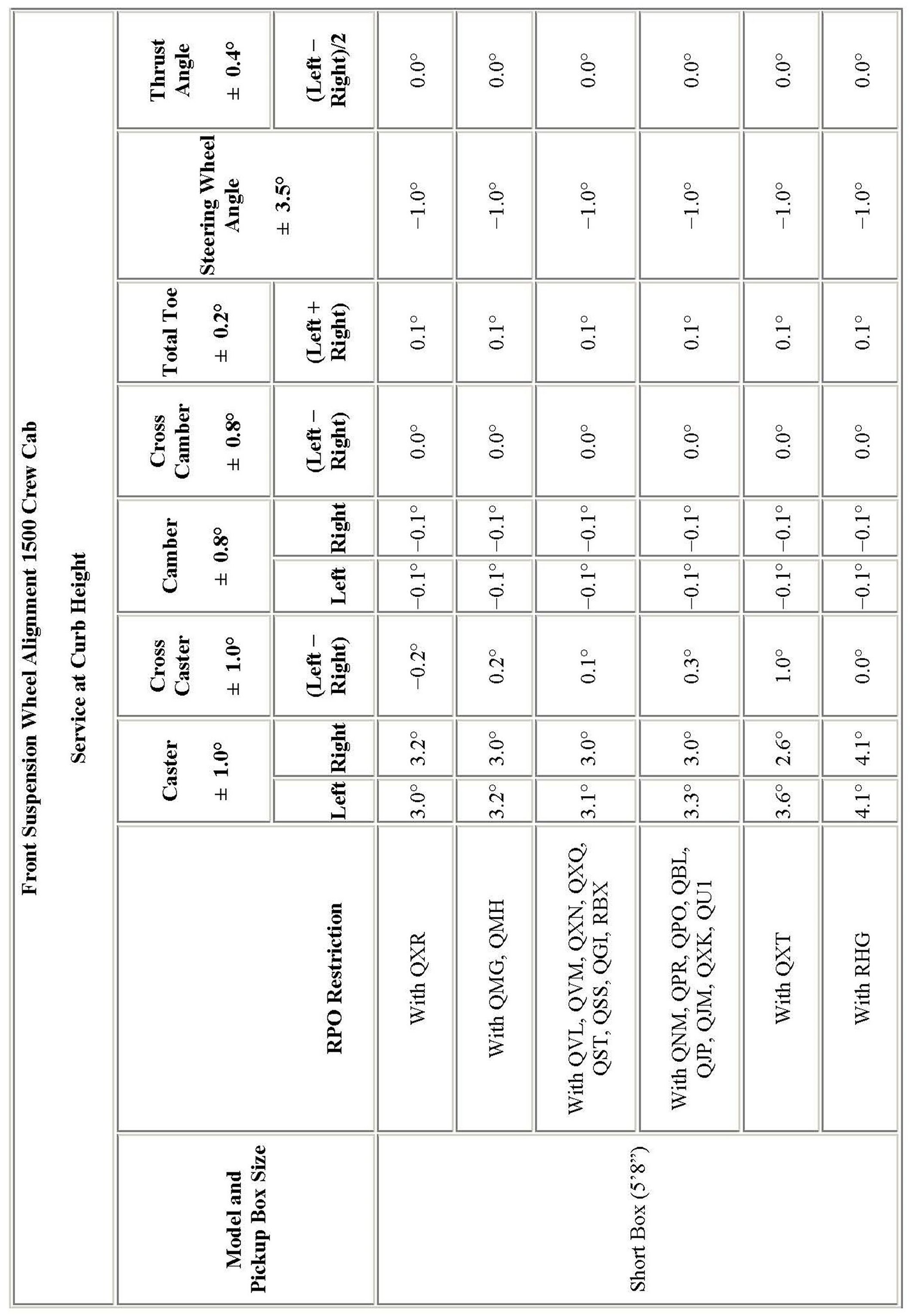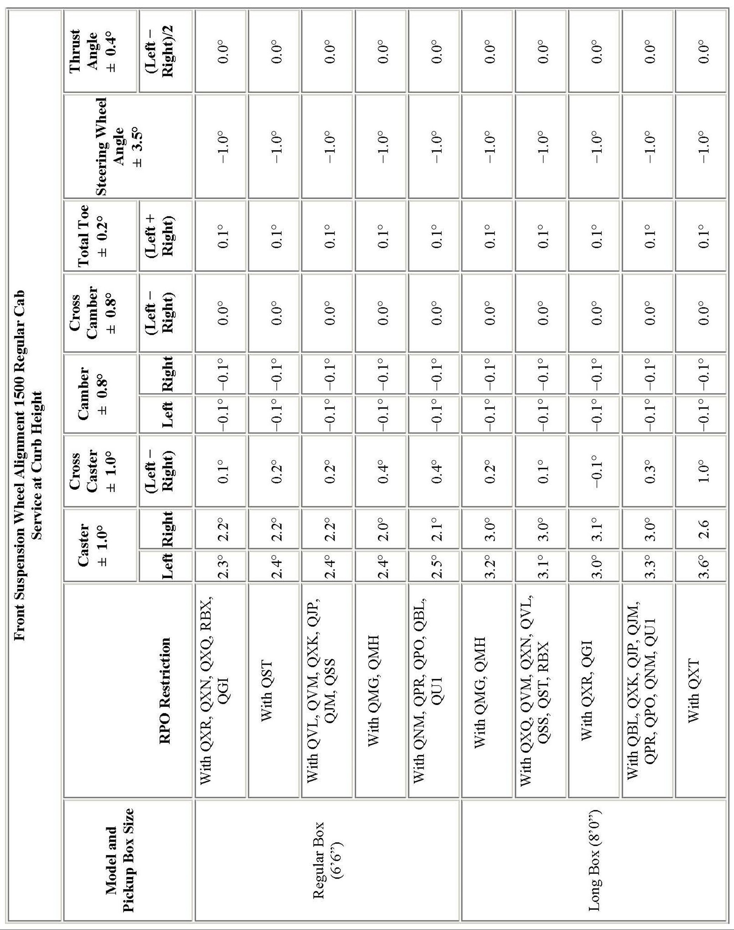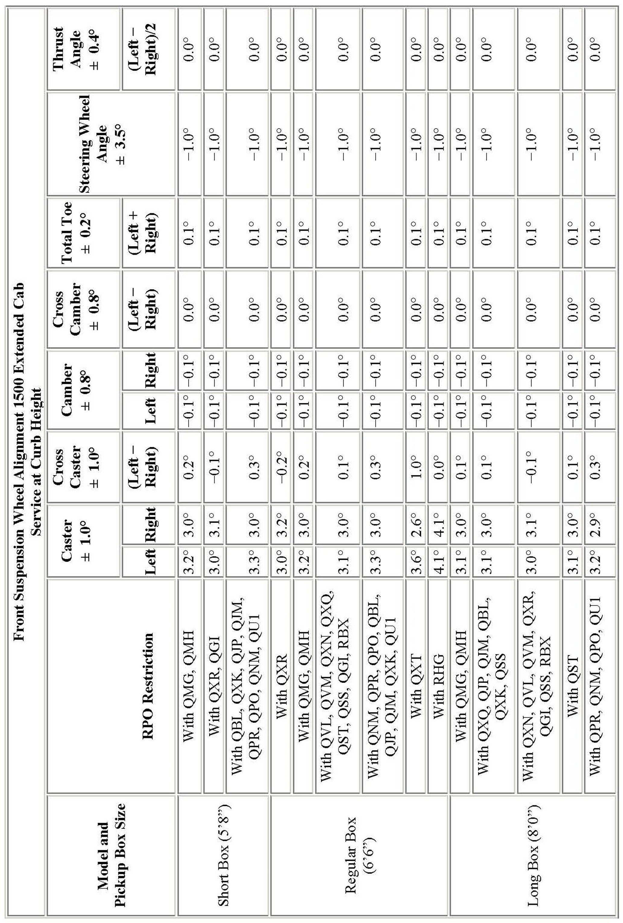 Wheel Alignment Specifications