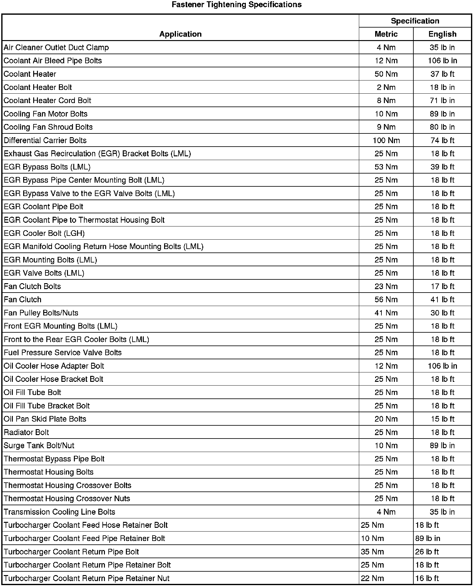 Fastener Tightening Specifications