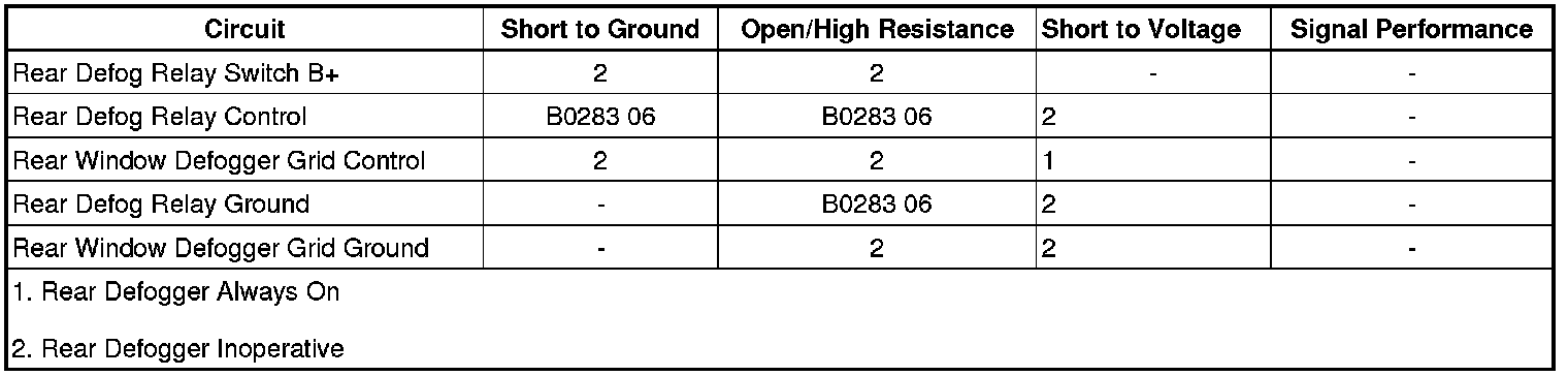 • If the defogger grid does not activate, test the control circuit for a short to ground or an open/high resistance. If the circuit tests normal, test or replace the defogger grid.