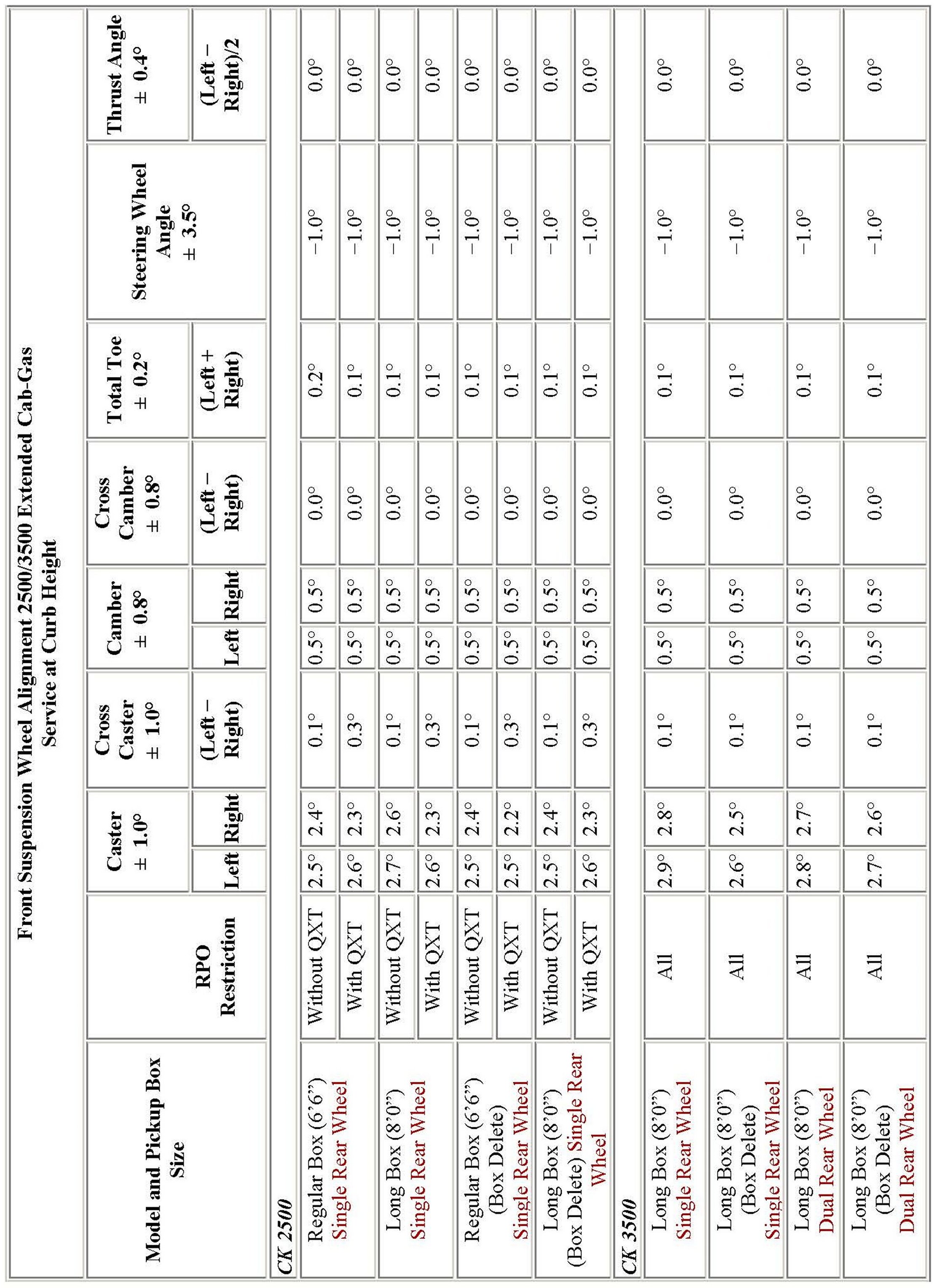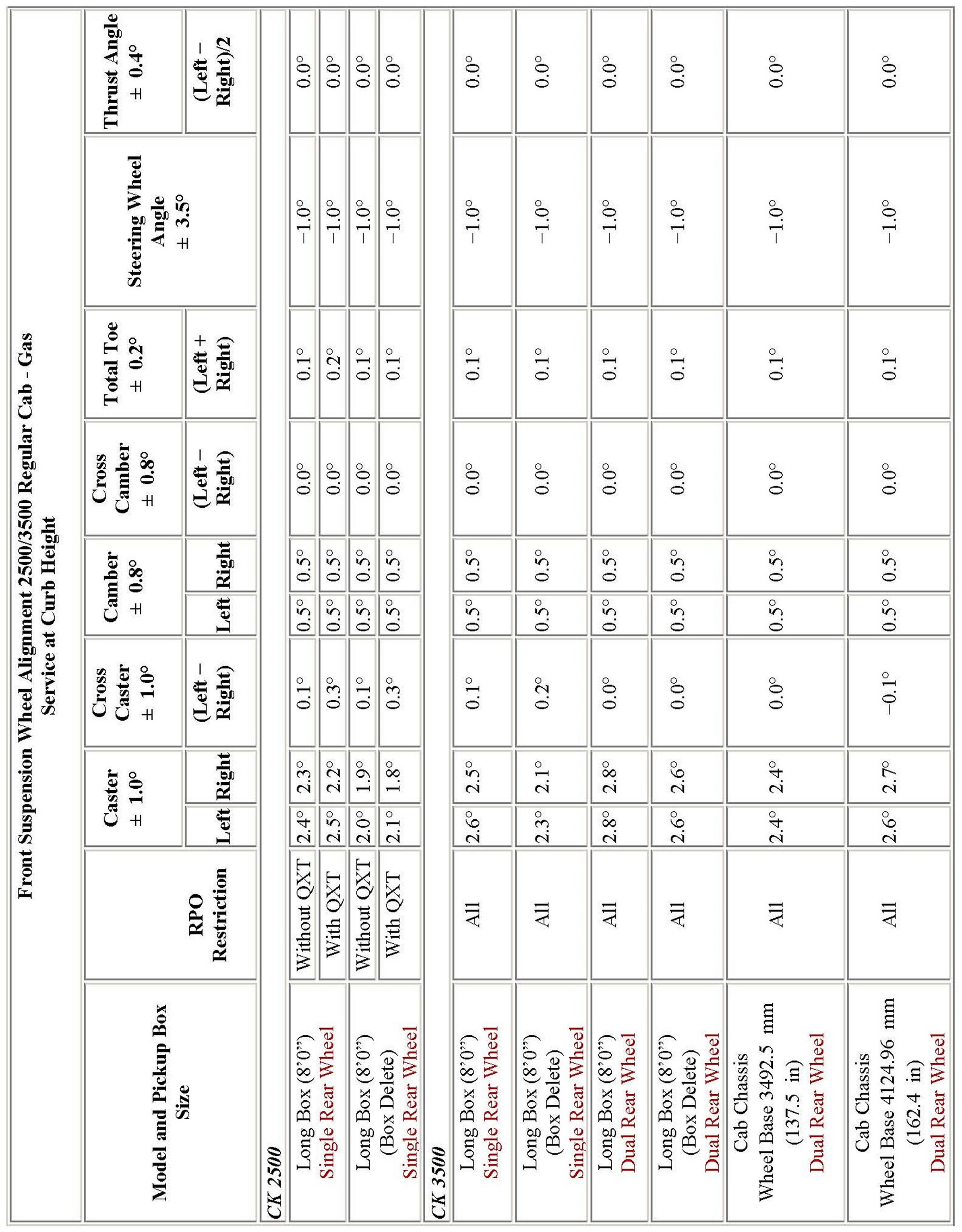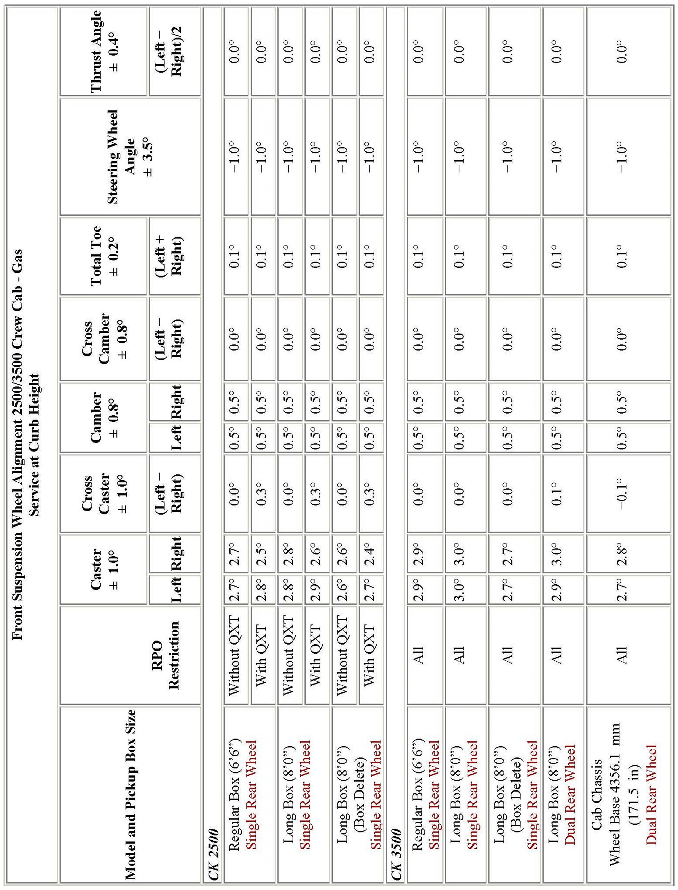 Wheel Alignment Specifications
