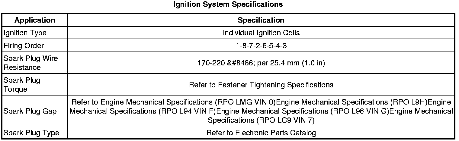 Ignition System Specifications