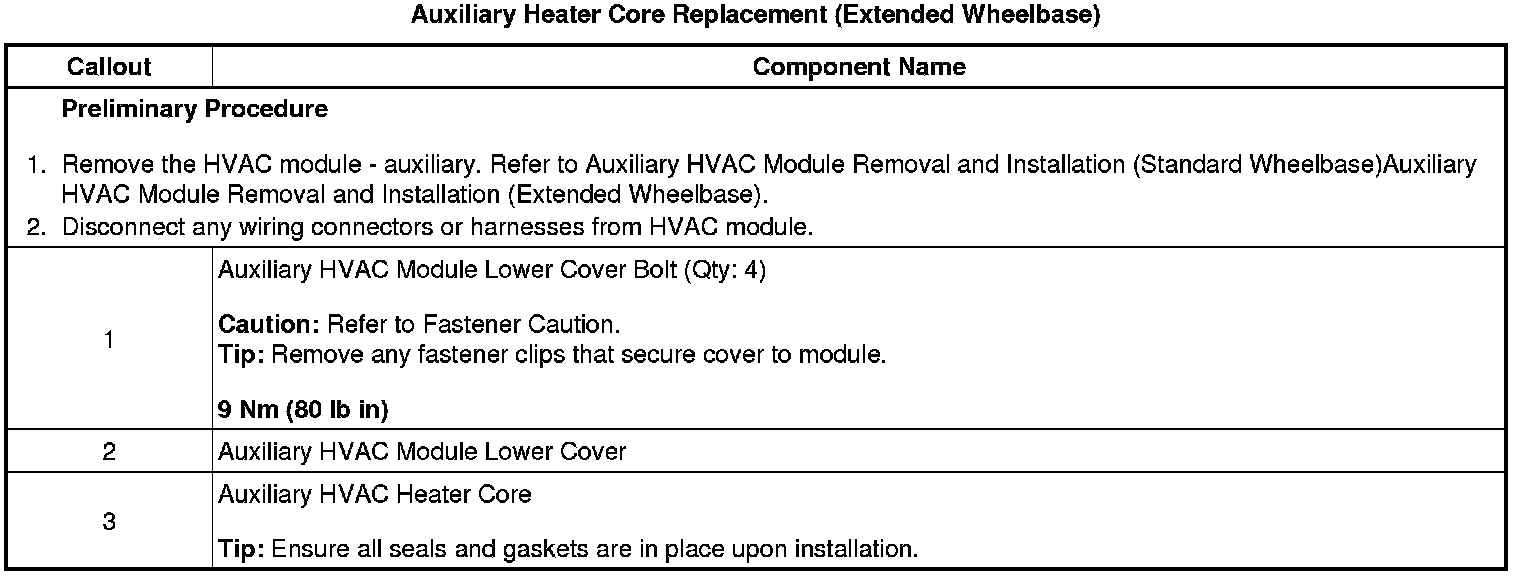 Auxiliary Heater Core Replacement (Extended Wheelbase)