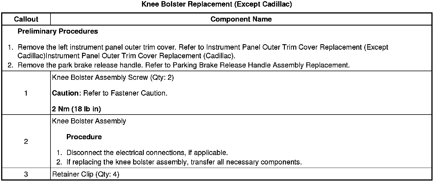 Knee Bolster Replacement (Except Cadillac)