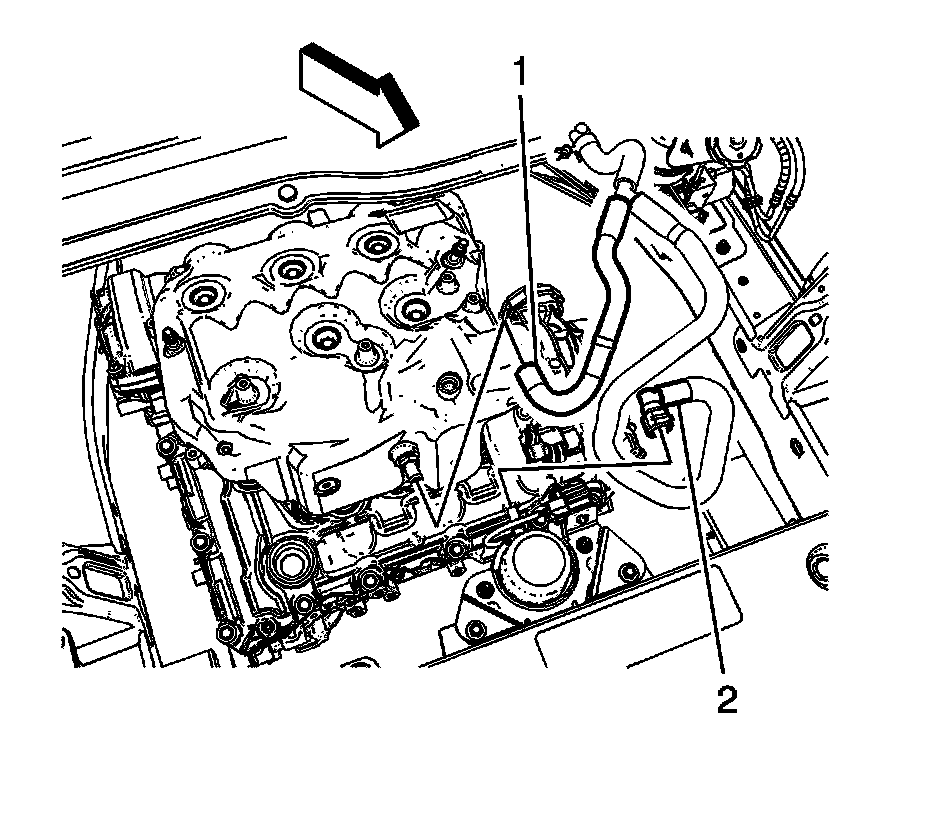7. Release the quick connect (2) from the power brake booster auxiliary pump.