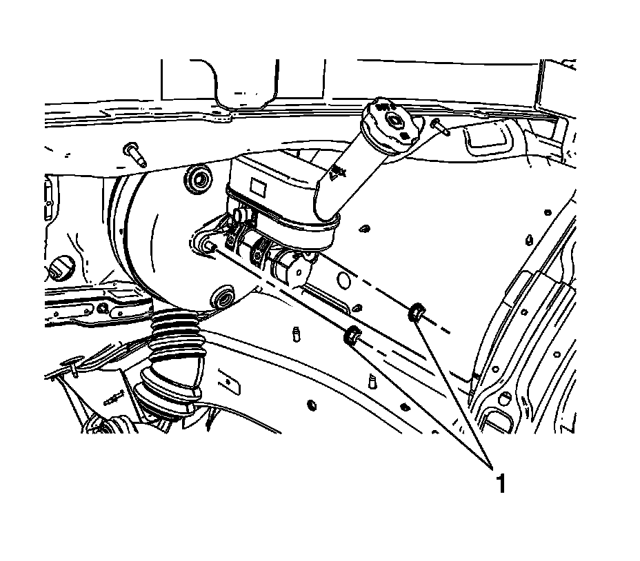 1. Install the power brake booster check valve and hose assembly (1) to the brake booster.