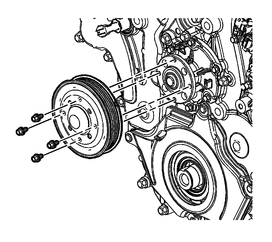 2. Remove the water pump pulley bolts.
