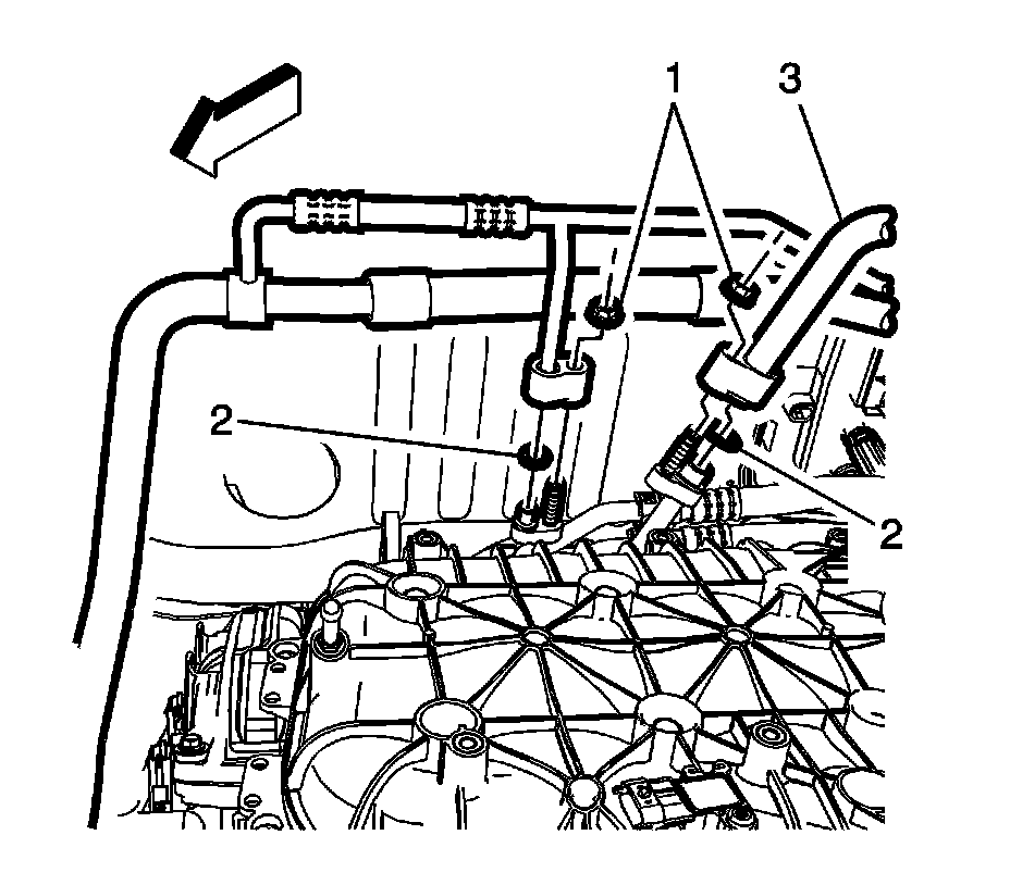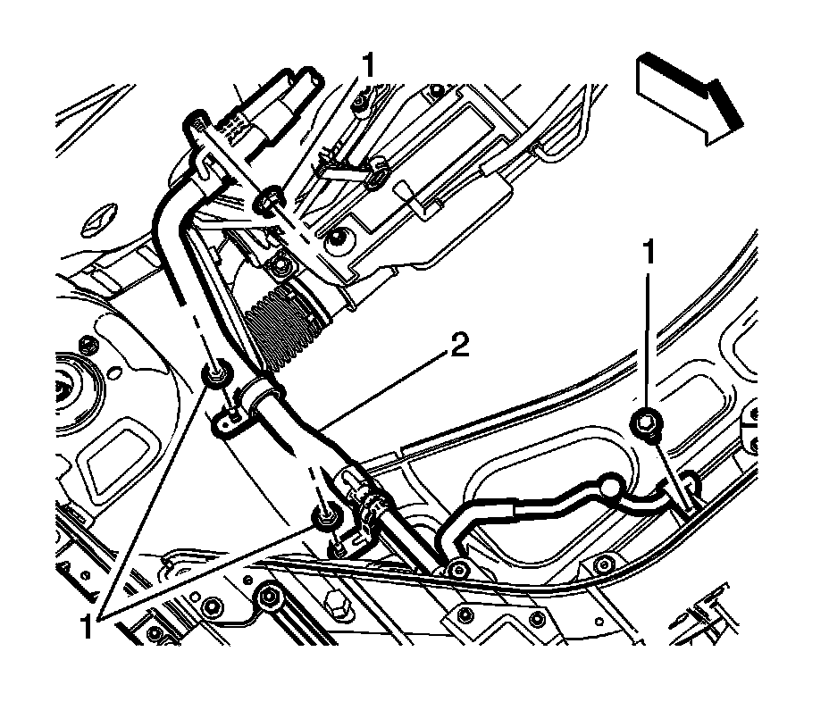 3. Install the air conditioning refrigerant heat exchanger fasteners (1) to the vehicle and tighten to 9 Nm (80 lb in).