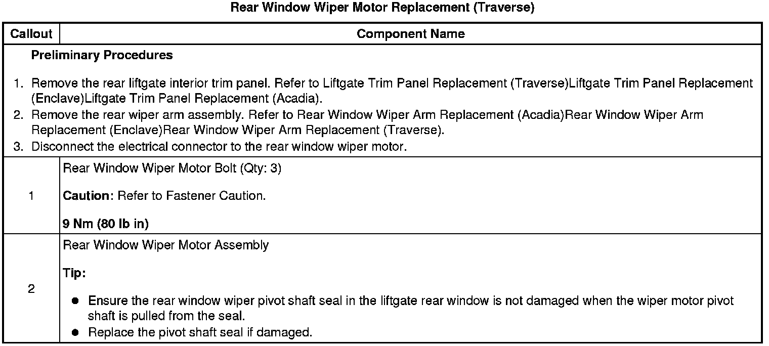 Rear Window Wiper Motor Replacement (Traverse)