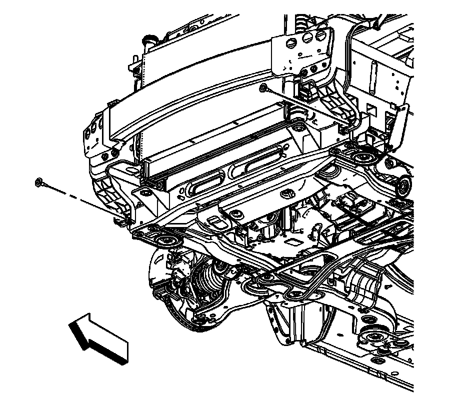 1.Remove the front bumper fascia. Refer to Front Bumper Fascia Replacement .