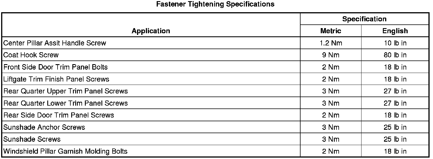 Fastener Tightening Specifications