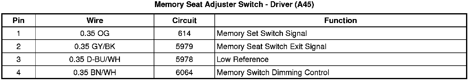 Memory Seat Adjuster Switch - Driver (A45)