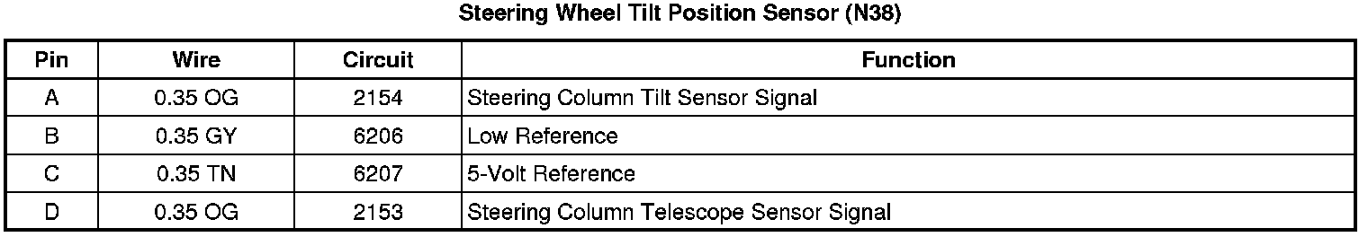 Steering Wheel Tilt Position Sensor (N38)