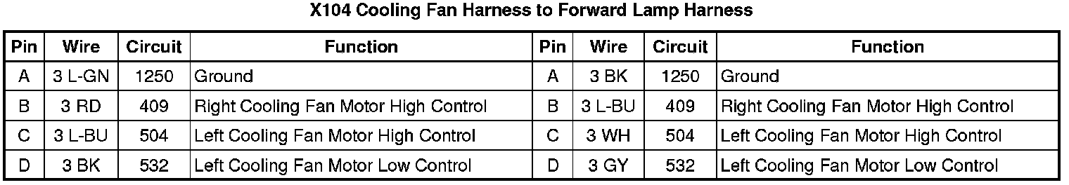 X104 Cooling Fan Harness to Forward Lamp Harness