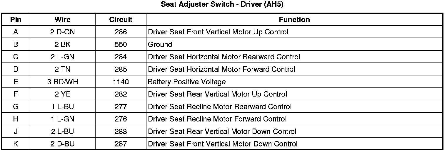 Seat Adjuster Switch - Driver (AH5)