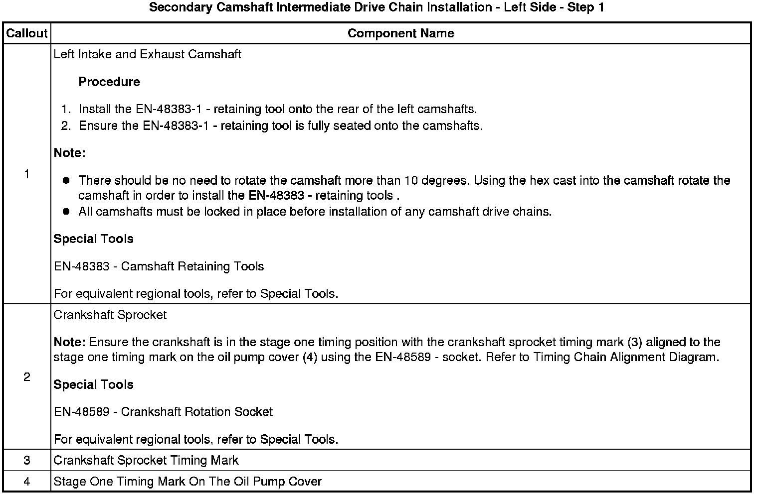 Secondary Camshaft Intermediate Drive Chain Installation - Left Side - Step 1