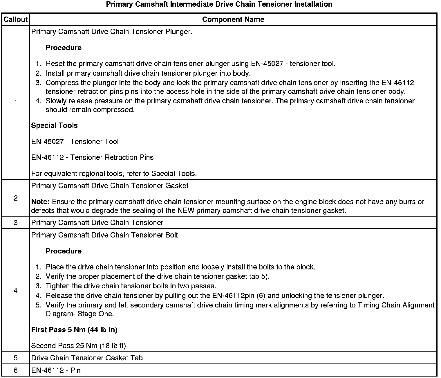 Primary Camshaft Intermediate Drive Chain Tensioner Installation