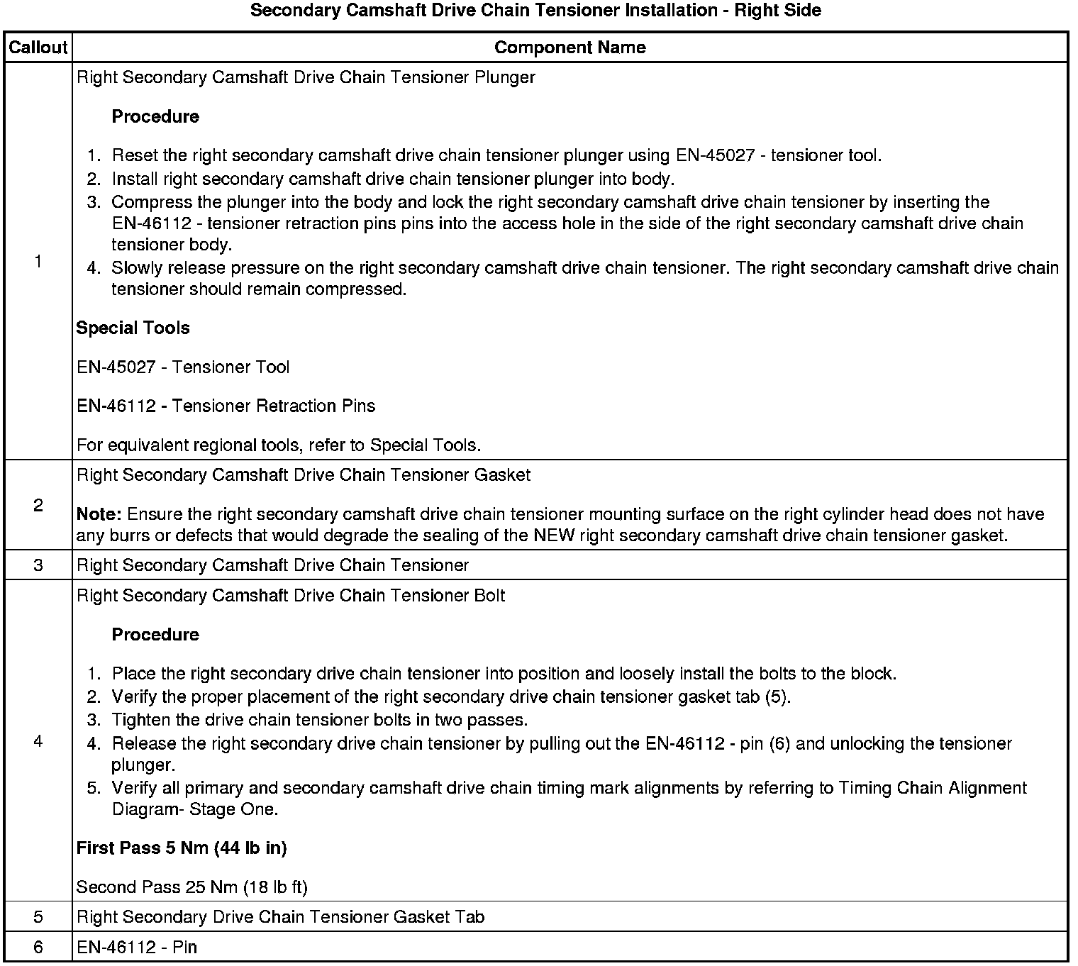 Secondary Camshaft Drive Chain Tensioner Installation - Right Side
