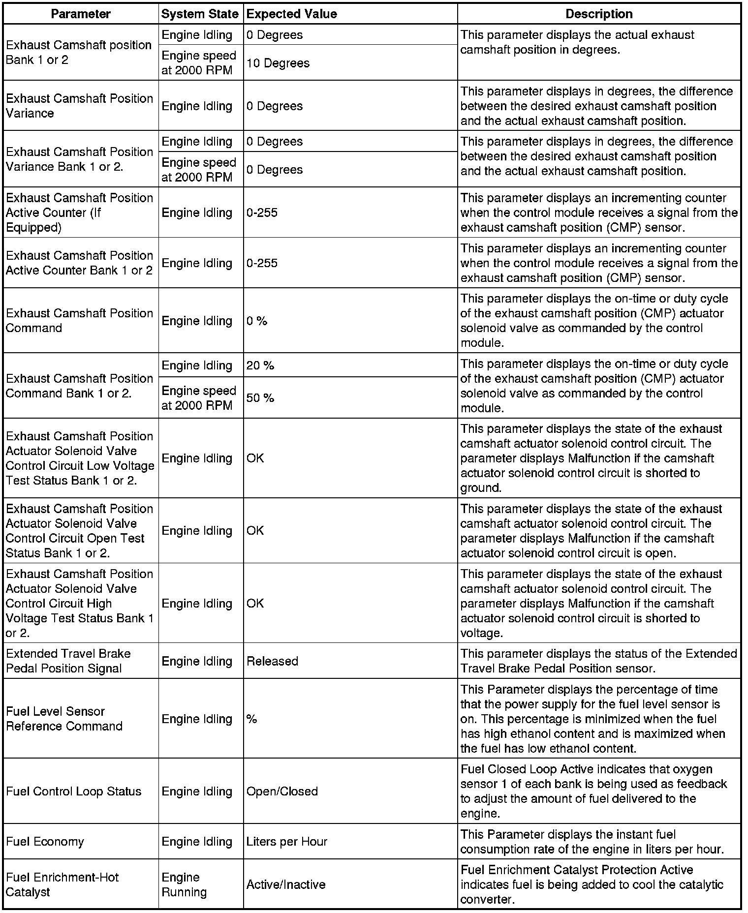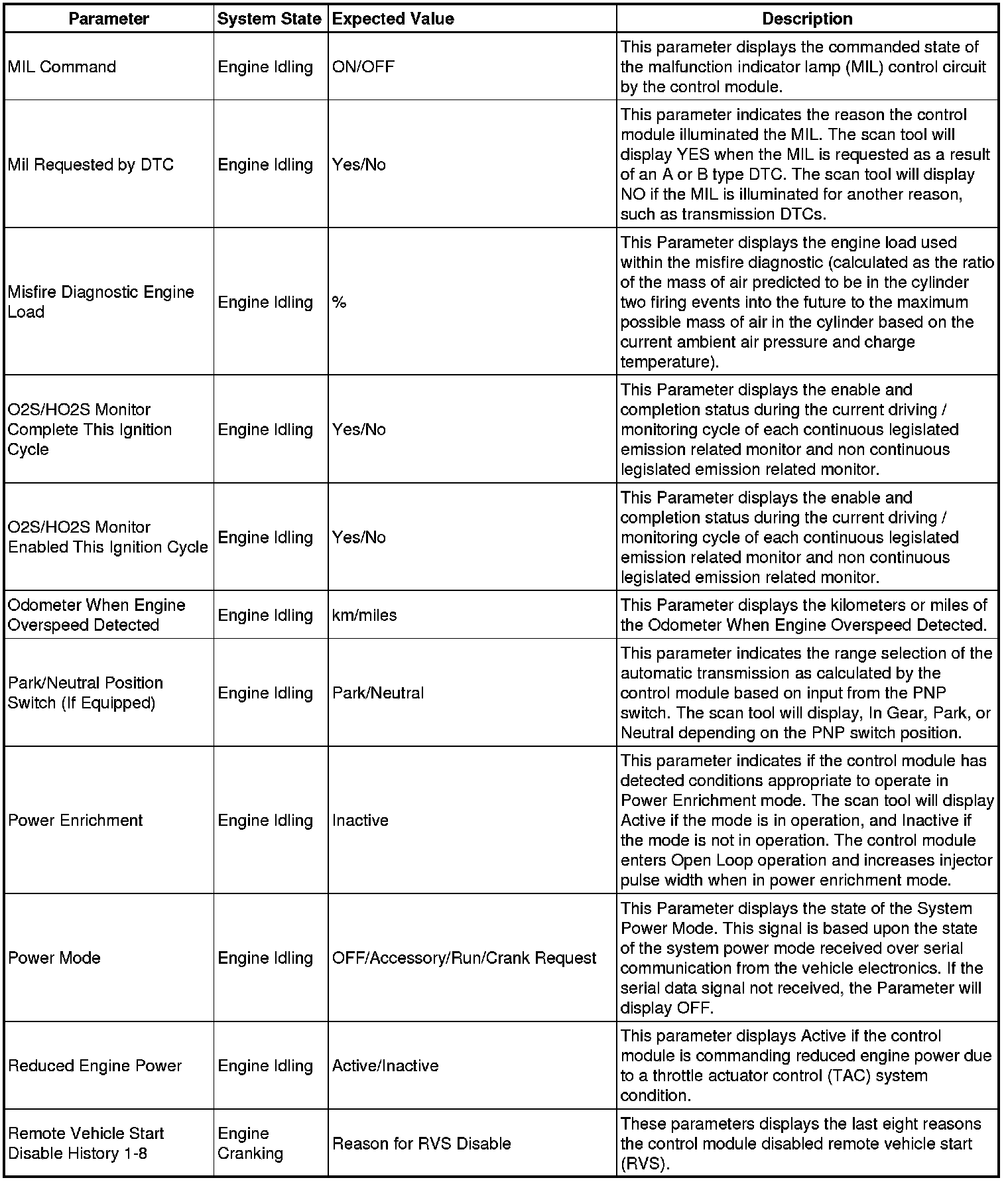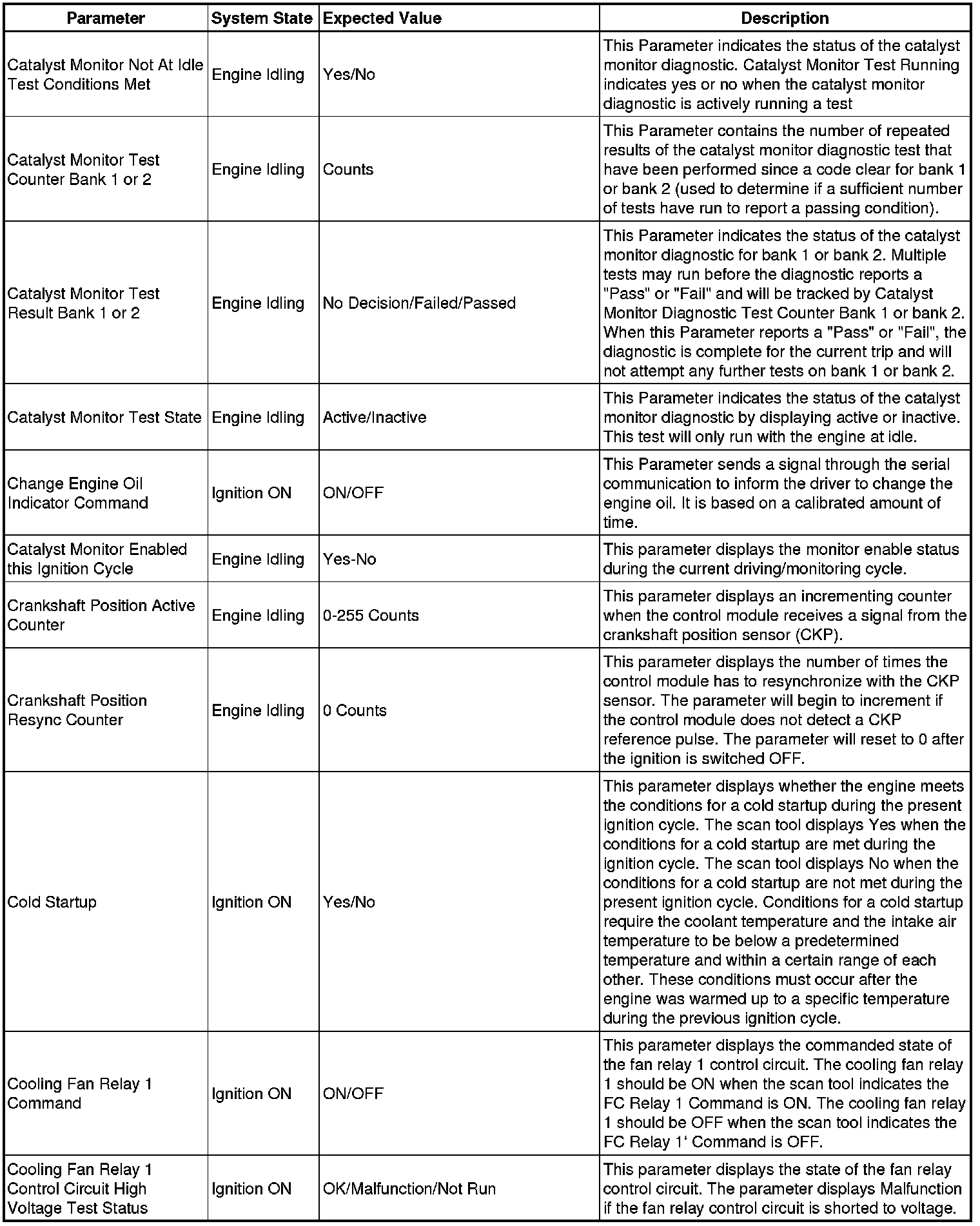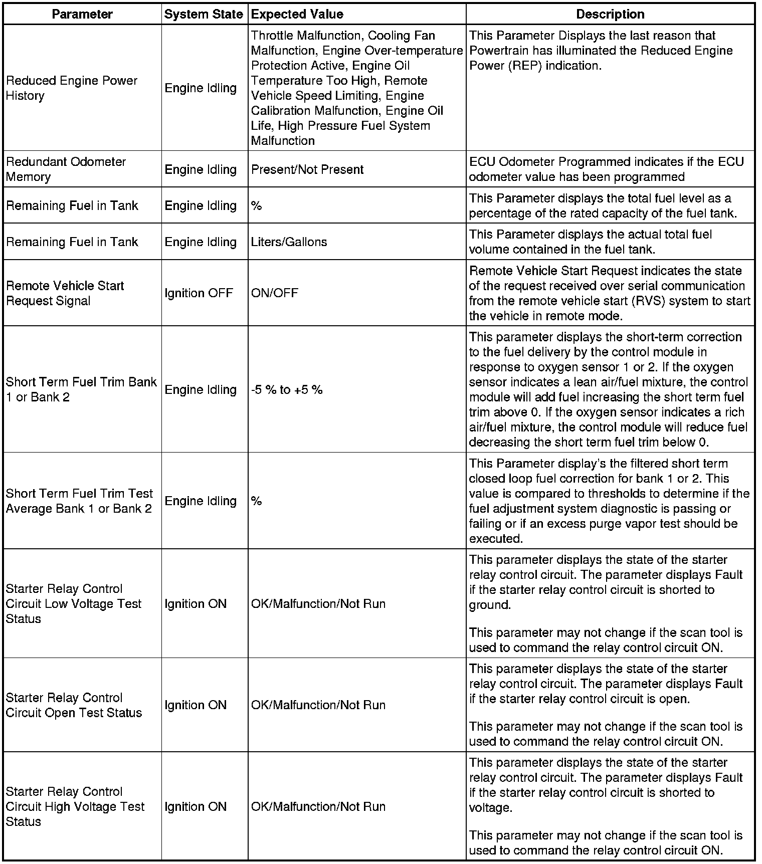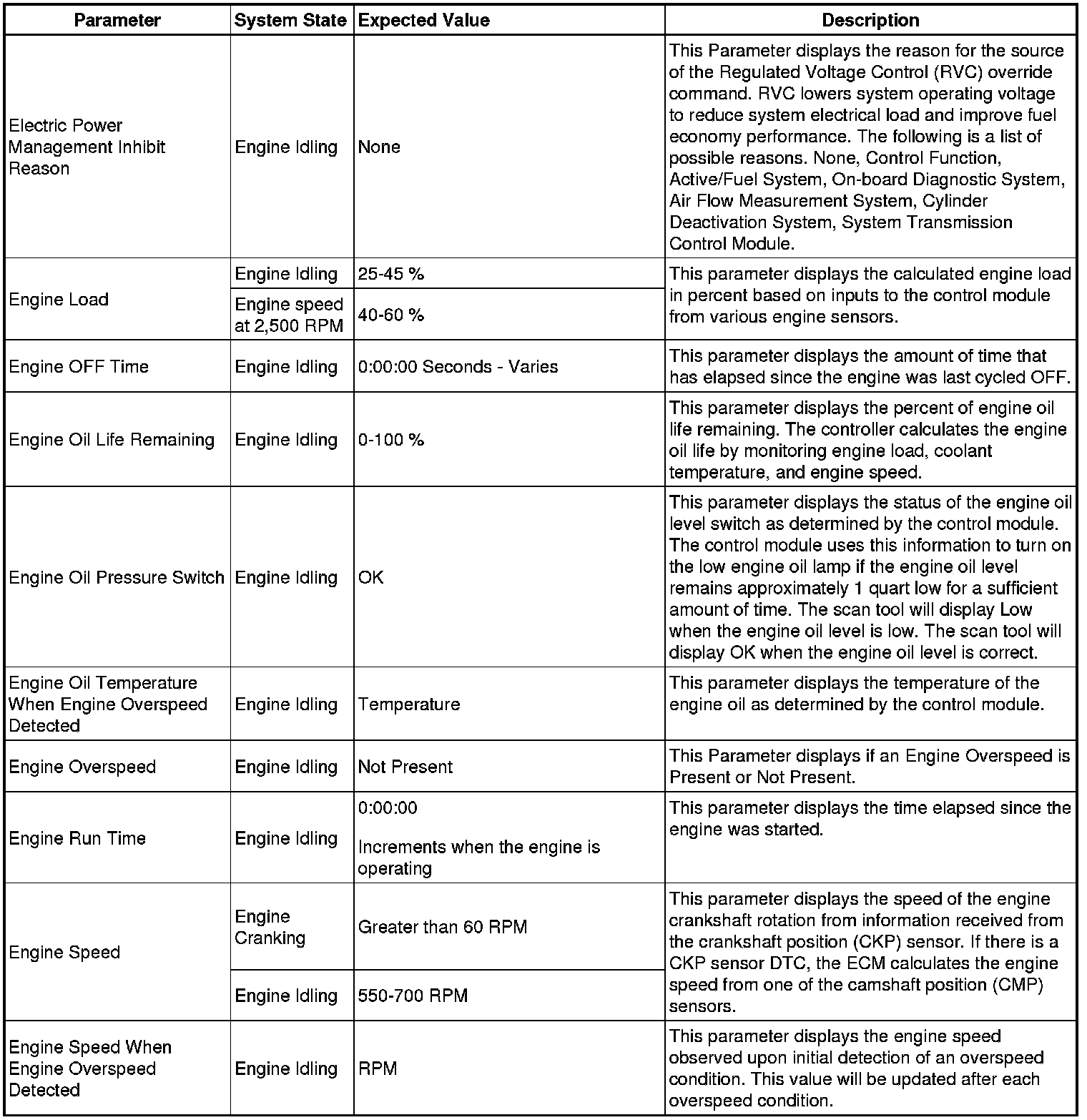 The Engine Control Module Scan Tool Data List contains all engine-related parameters that are available on the scan tool. The list is arranged in alphabetical order. A given parameter may appear in any one of the data lists, and in some cases may appear more than once, or in more than one data list in order to group certain related parameters together.