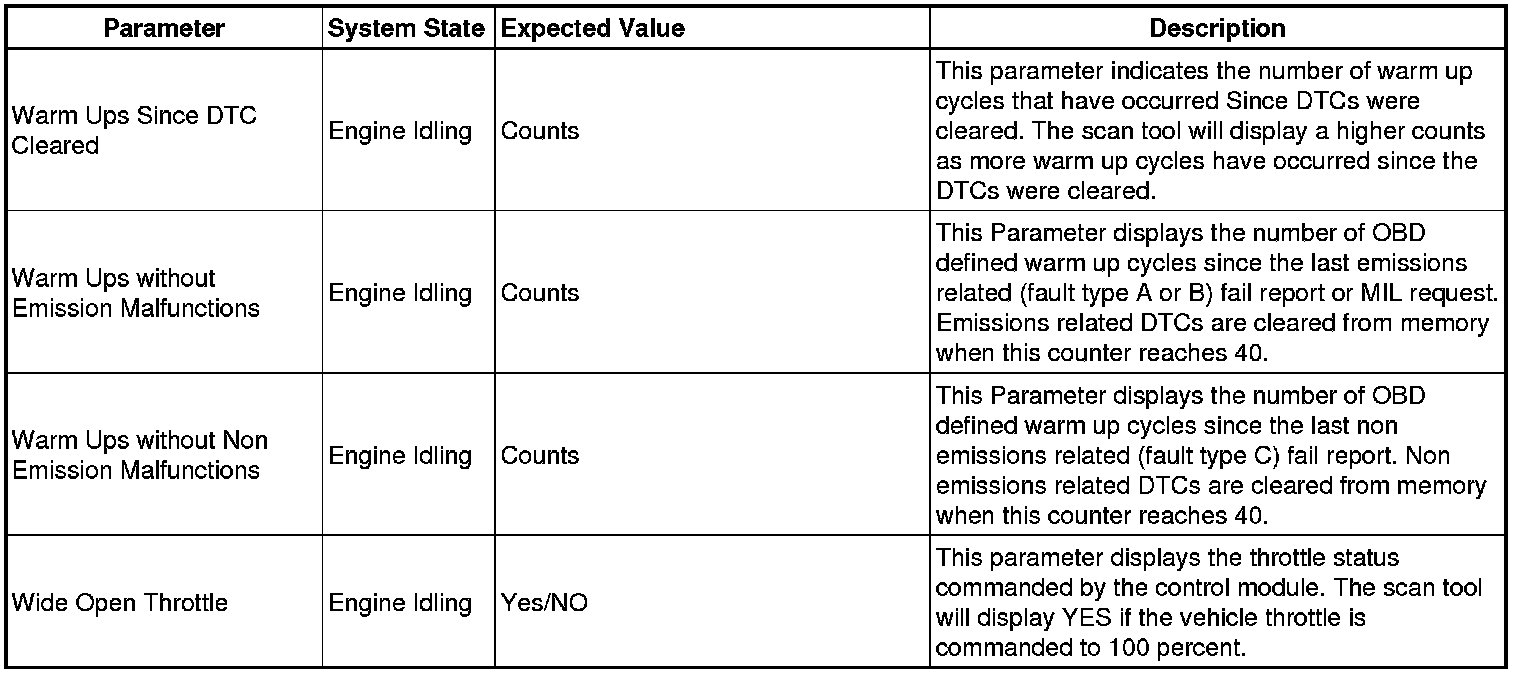 Only the parameters listed below are referenced in this service manual for use in diagnosis.