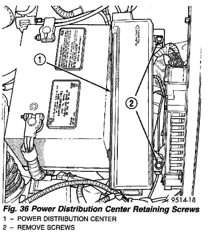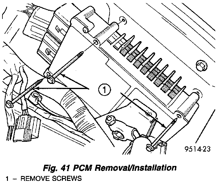 7. Pull PDC rearward to remove from front bracket. Lay PDC aside to allow access to Powertrain Control Module (PCM).