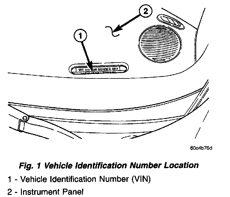 The Vehicle Identification Number (VIN) is located on the upper left corner of the instrument panel, near the left A-Pillar. The VIN consists of 17 characters in a combination of letters and numbers that provide specific information about the vehicle (Fig.1). Refer to VIN Code Decoding Chart.