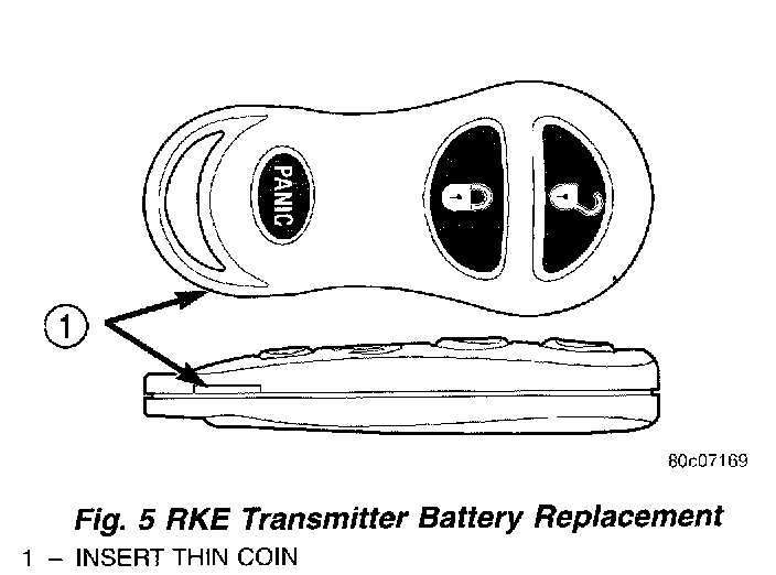 1. With the transmitter buttons facing down, use a coin to pry the two halves of the transmitter apart. Make sure not to damage the rubber gasket during removal.