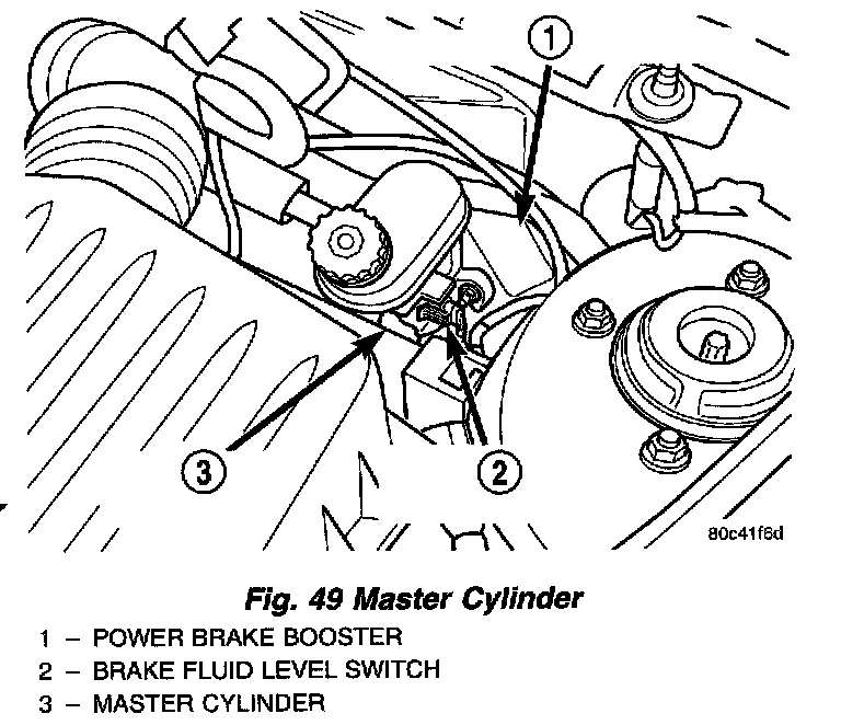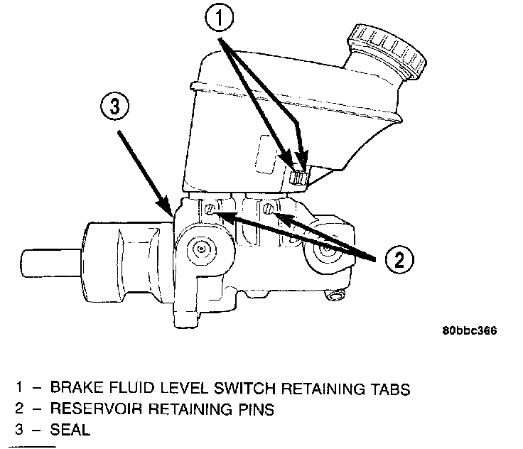 1. Remove the vehicle wiring harness connector from brake fluid level switch in master cylinder brake fluid reservoir.