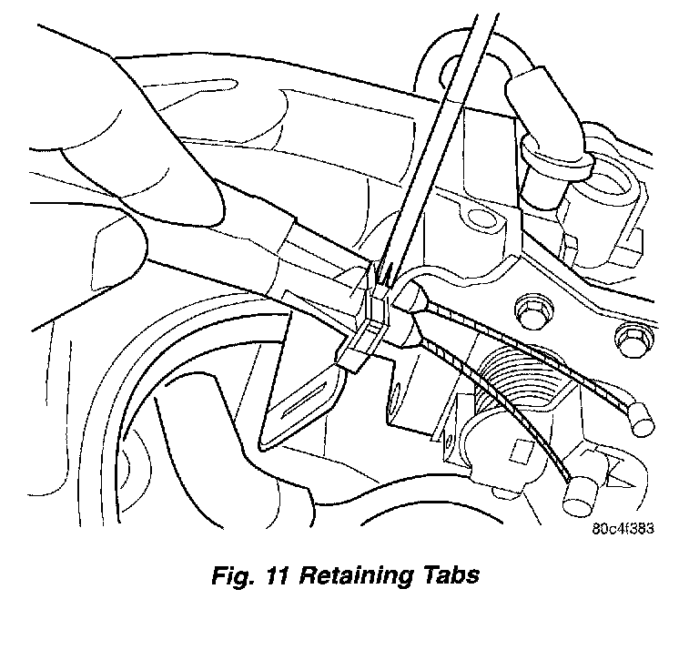 5. Slide cables into throttle cable bracket and engage retaining tabs.