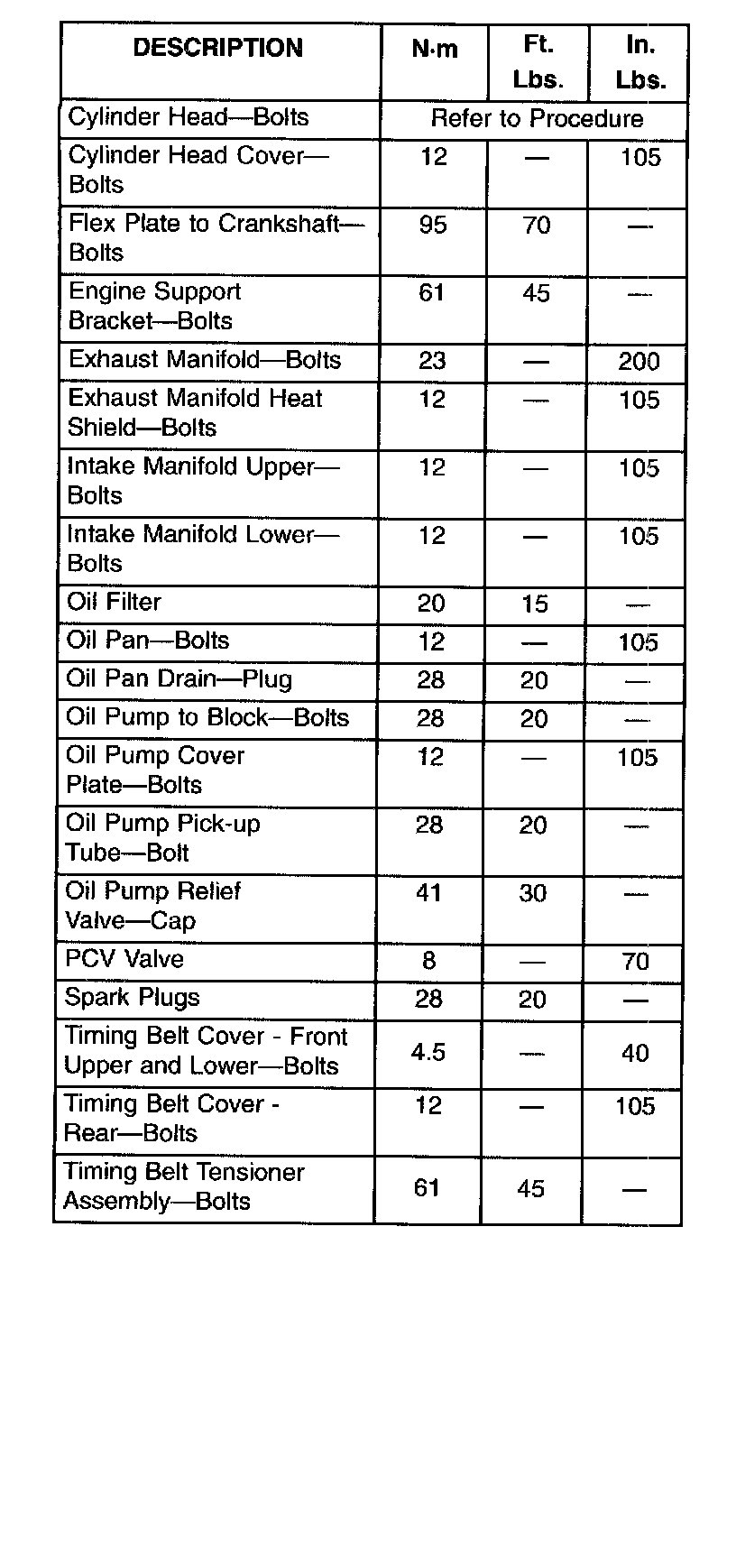 Engine Torque Specifications