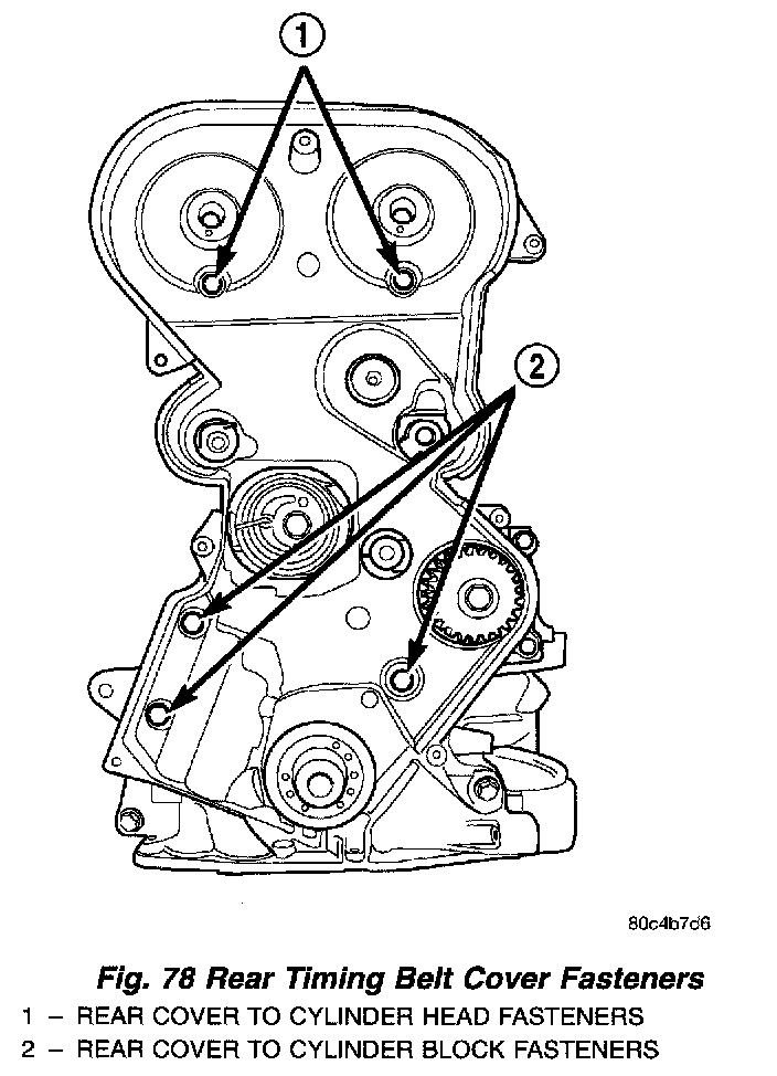 4. Remove rear timing belt fasteners and remove cover from engine (Fig. 78).