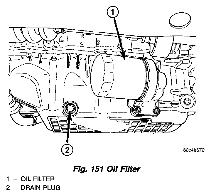 1. Using a suitable filter wrench, turn oil filter (Fig. 151) counterclockwise to remove.