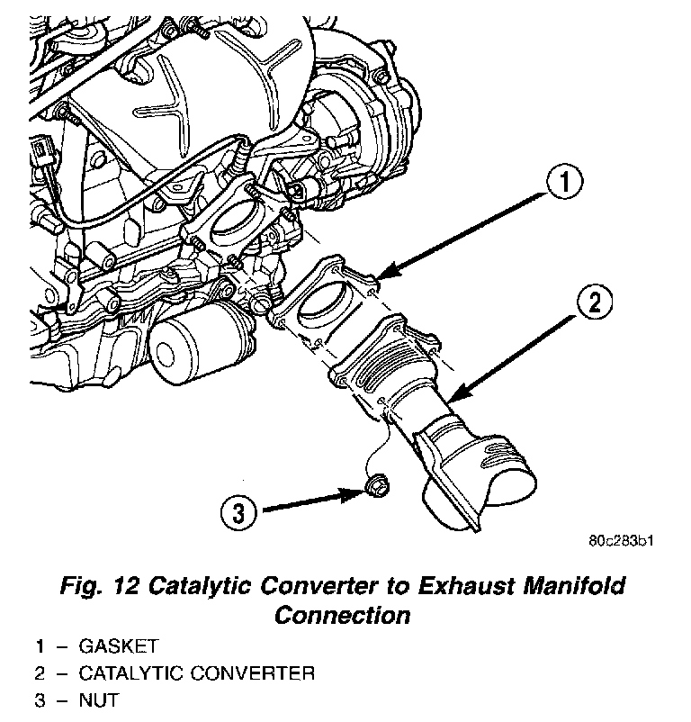 3. Remove catalytic converter to exhaust manifold attaching fasteners and remove converter from vehicle.