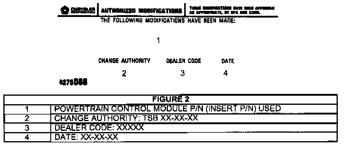 7. Type the necessary information on the "Authorized Software Update Label" p/n 04669020 (Figure 1). Attach the label to the PCM and cover the label with the clear plastic overlay.
