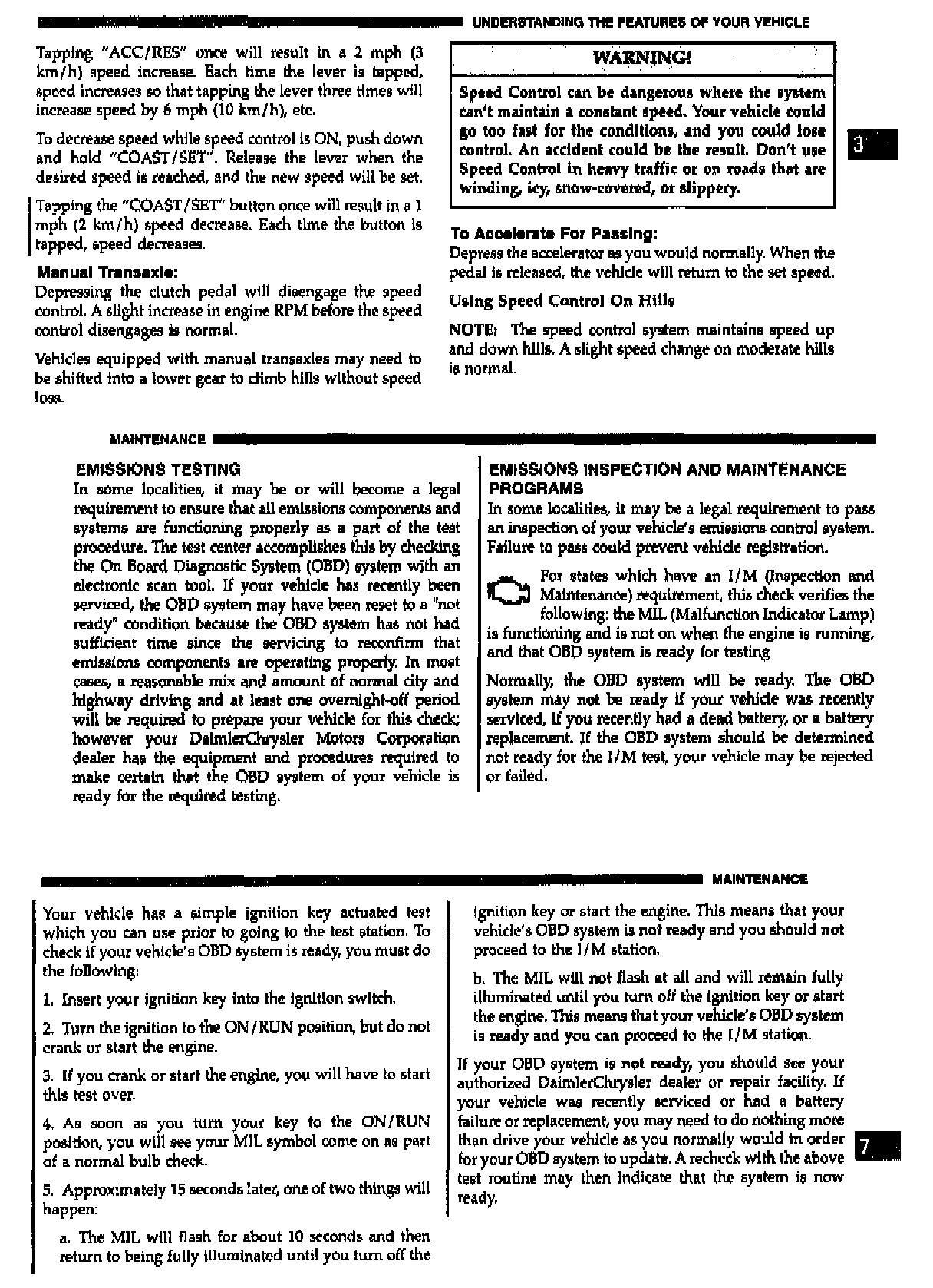 THE OWNER OF THE VEHICLE SHOULD BE MADE AWARE OF THE ADDED CRUISE CONTROL AND MIL FEATURE SINCE IT CHANGES THE OPERATION OF THEIR VEHICLE. SHOWN ARE PAGES FROM THE 2001 PT OWNER'S MANUAL (SECOND EDITION) THAT CAN BE COPIED AND GIVEN TO OWNERS RECEIVING THIS UPDATE.