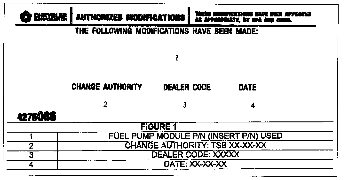 2. Type the necessary information on the "Authorized Modification Label" p/n 04275086 and attach the label near the VECI label (Figure 1).