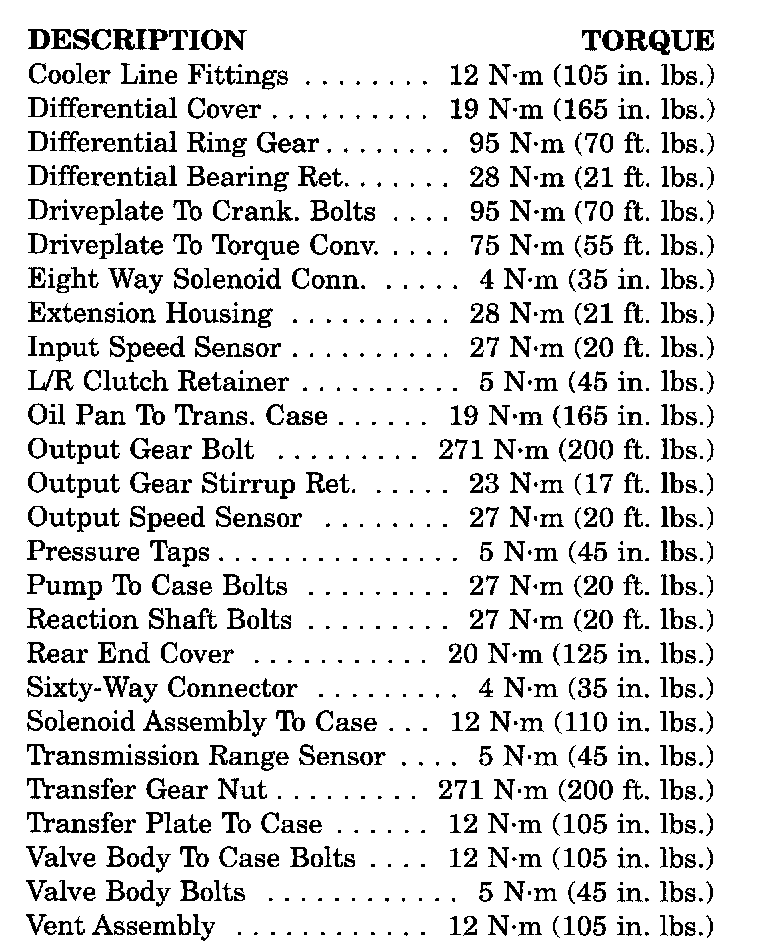 Torque Specifications