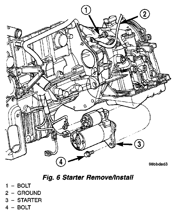 1. Reinstall starter motor into vehicle lower engine compartment.