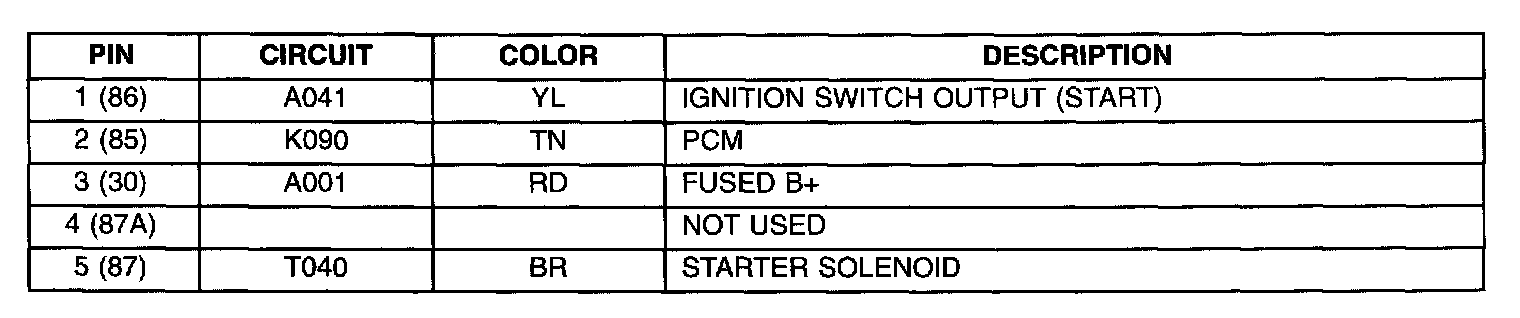 Starter Relay Pin Call-Out: