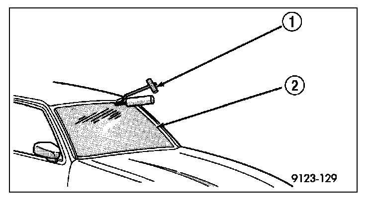 6. Using a sharp cold knife (1), cut urethane adhesive holding the windshield to the A-pillars, roof header and cowl pinch weld fences. A power cutting device can be used if available.
