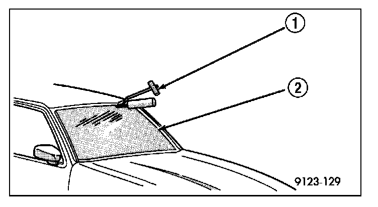 9. Apply a bead of urethane (4) on windshield glass as indicated.