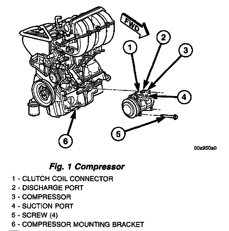NOTE: If a replacement compressor is being installed, be certain to check the refrigerant oil level. Use only refrigerant oil of the type recommended for the compressor in the vehicle.