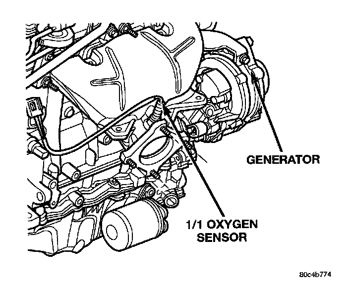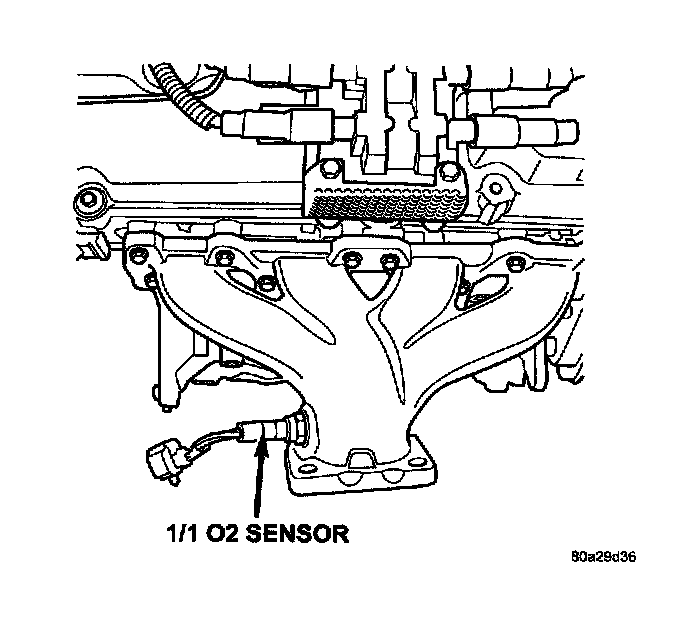 The upstream oxygen sensor threads into the outlet flange of the exhaust manifold.