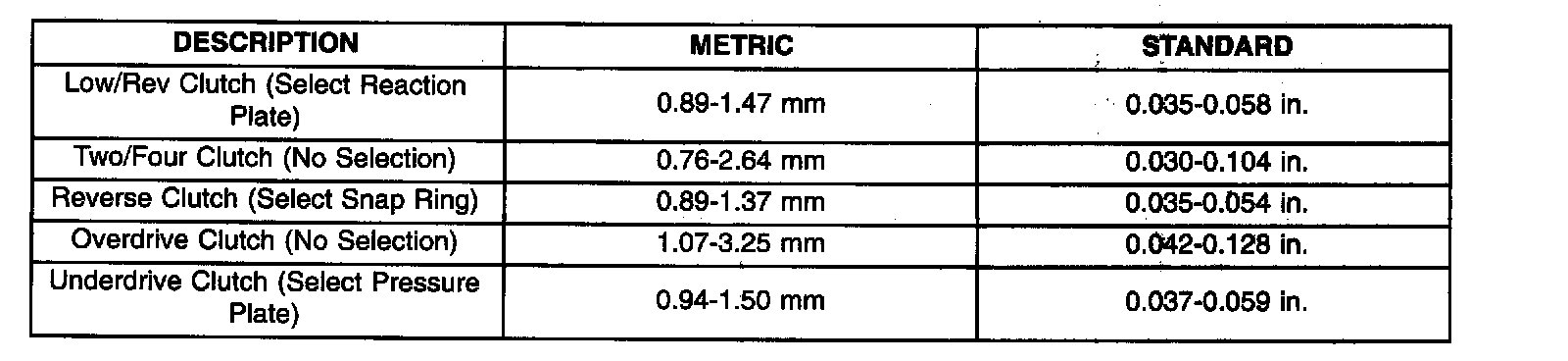 CLUTCH CLEARANCES