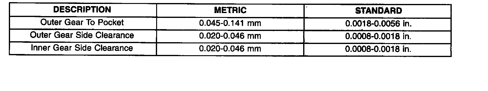 OIL PUMP CLEARANCES