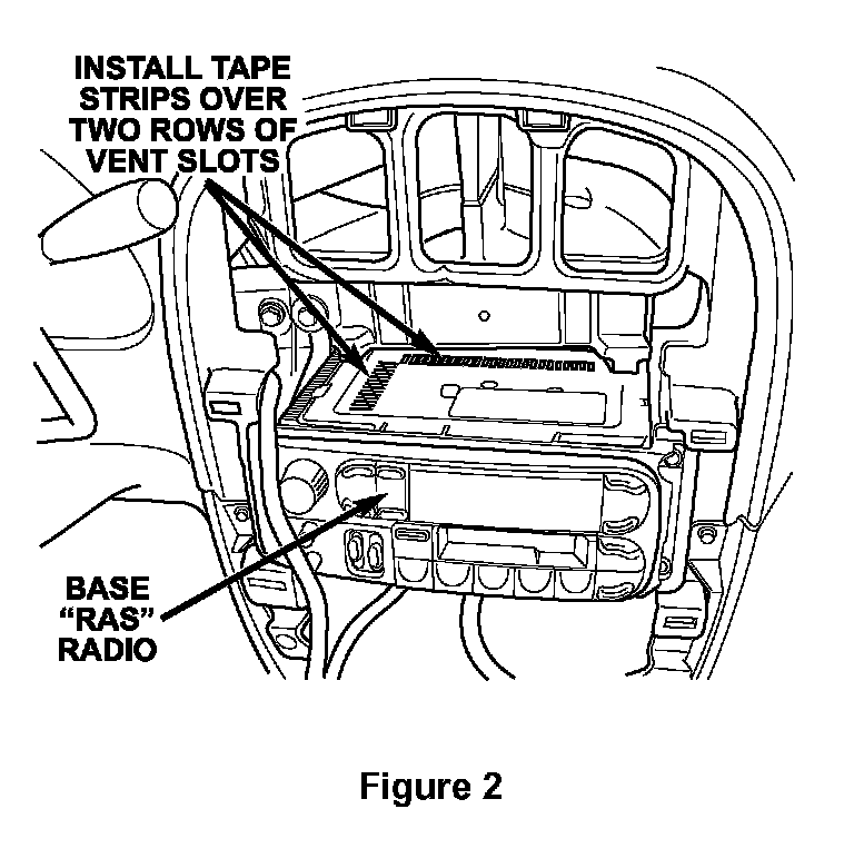 5. Peel the paper backing from the supplied aluminum foil tape strips and apply the tape strips to the top of the radio so that the two rows of vent slots are covered (Figure 2). Be sure that the slots are completely covered and that the tape is sealed around all of the edges.